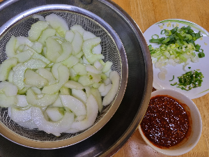 - 절일 때 물엿을 넣으면 노각의 아삭한 식감이 오래가요.
