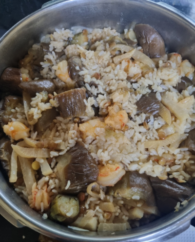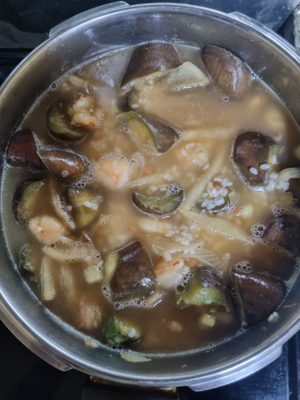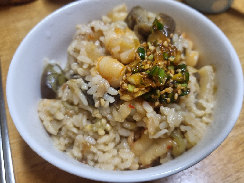 새우와 가지의 조화가 은은하게 밥알에 스며듭니다.