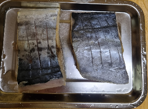 - 삼치를 올리고, 다시 양념을 발라줍니다.