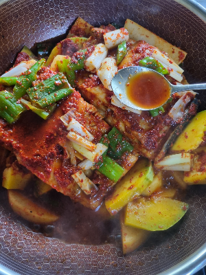 이때 수저로 국물을 떠서 삼치 위에 골고루 양념 끼얹어주기를 4-5번 반복하여야 양념이 삼치 속까지 잘 배어 훨씬 맛있게 드실 수 있어요.