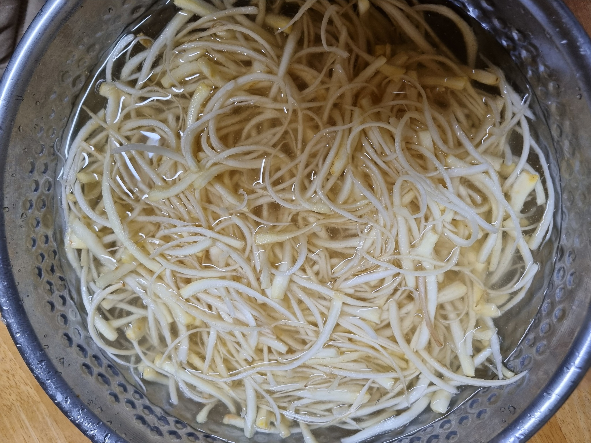 큰 볼에 도라지를 넣고 물은 잠길 정도로 부어줍니다.
