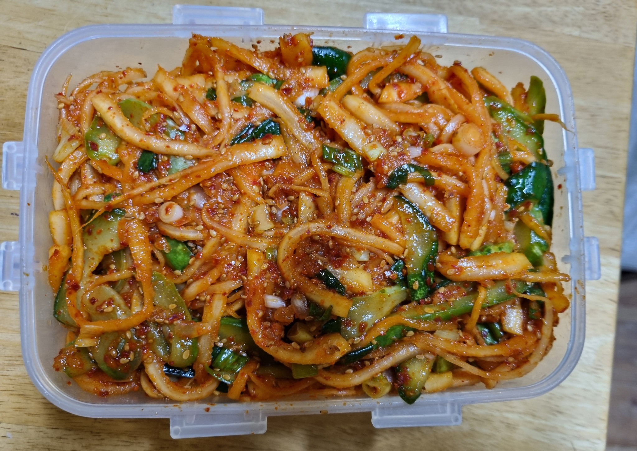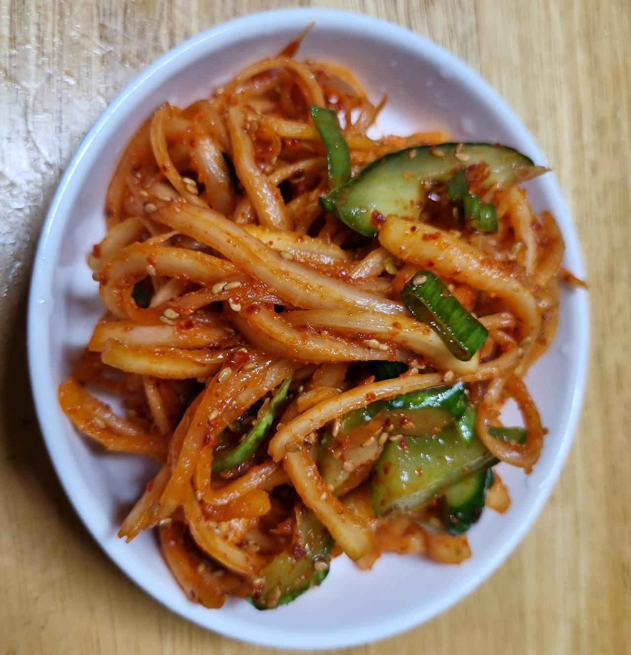 탱글한 도라지에 아삭한 오이, 매콤새콤한 양념이 어우러져